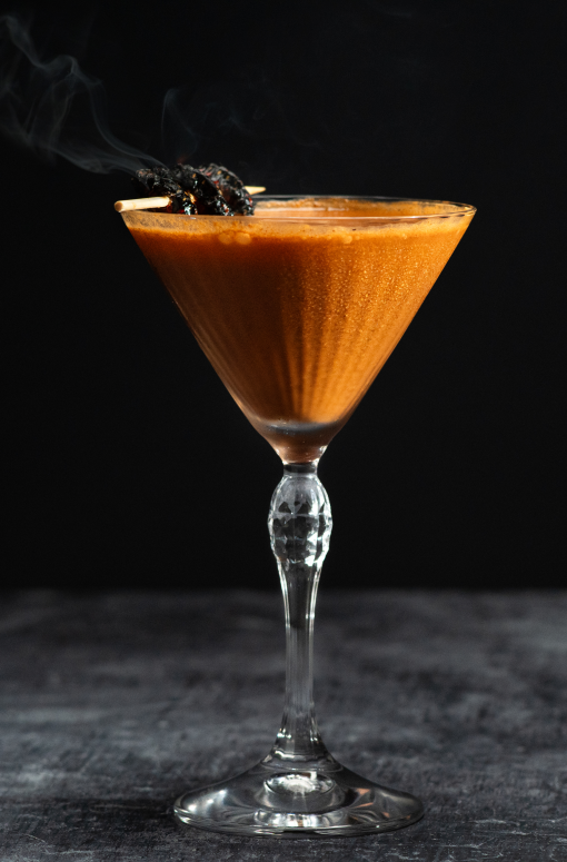 Tequila, chili liquor, orange, lemon, agave syrup, carbon, grasshopper (chapulín) salt.