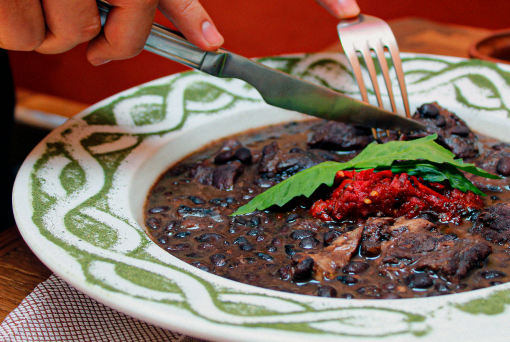 Black bean cooked with pork, Served with white rice and chiltomate. (Pork leg optional)